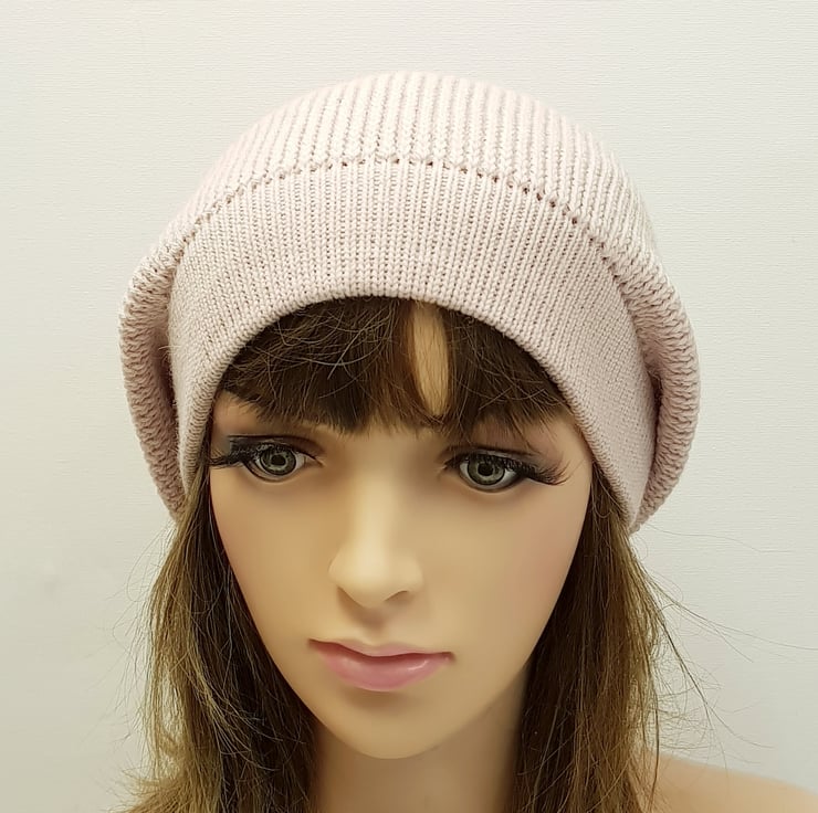 This beret made from 45% alpaca, 30% polyamide, 25% lambswool knitting yarn . Knitted by domestic knitting machine.