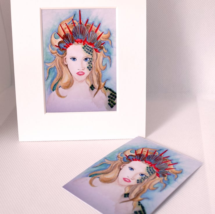 Open Edition ACEO print from my original watercolour painting of a mermaid