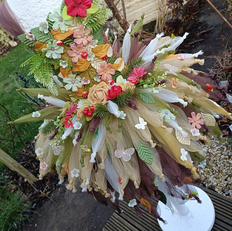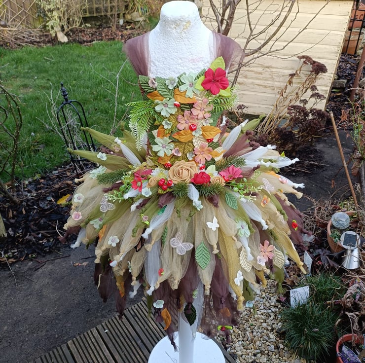 Each of my dresses are made to order and each one will be slightly different to the next. The foliage and flowers may differ slightly, depending on stock availability, but I guarantee each one is made as magical as the next.