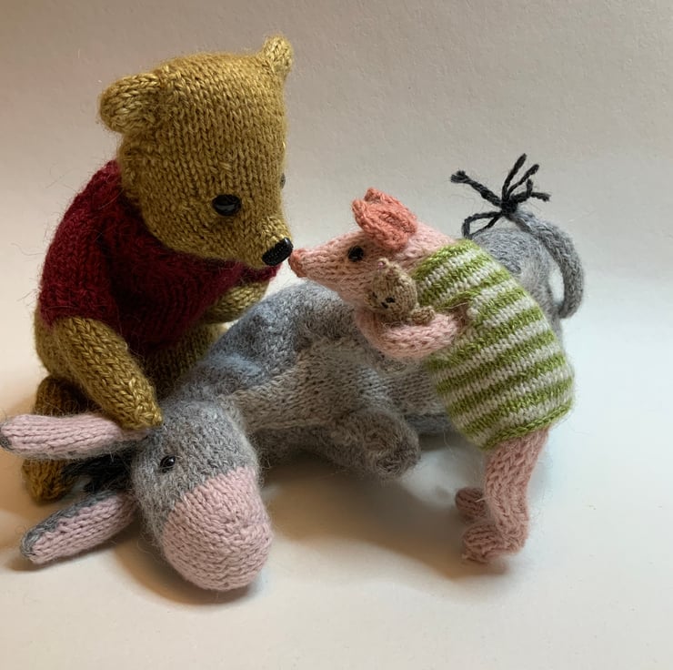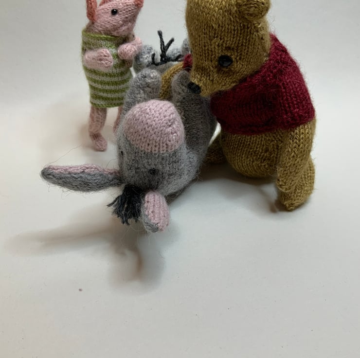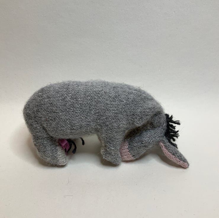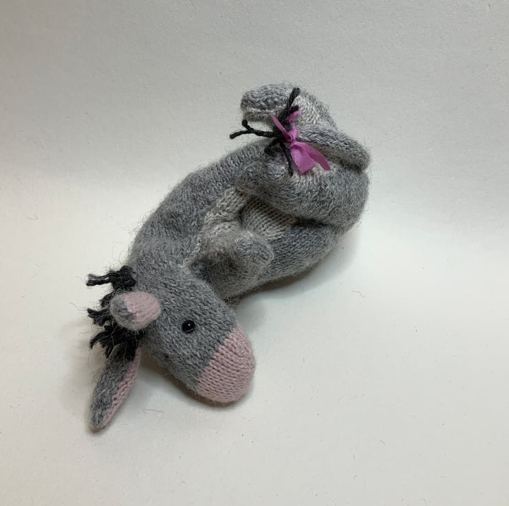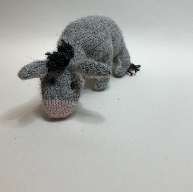 Hand Knitted by me using soft Alpaca yarns and the Dot Pebbles Eeyore Pattern.