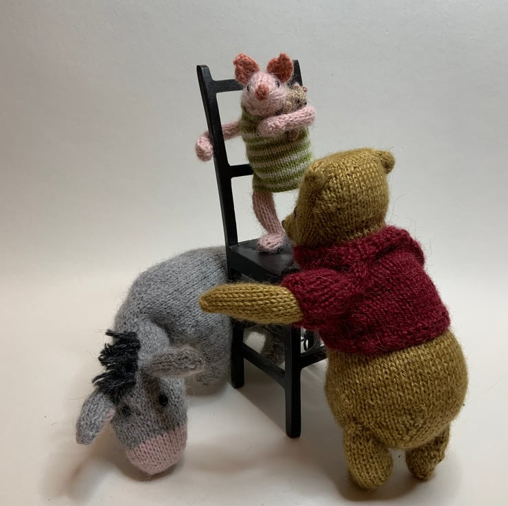 This little donkey is approximately 19 cm long and 7cm tall whilst standing. Please note, there are no wires in this little chap, so he is not as posable as some of the characters. However, he stands on his own and is suitable saggy, just like the Eeyore in the original book.