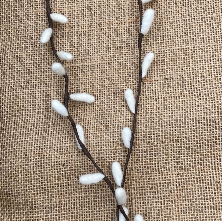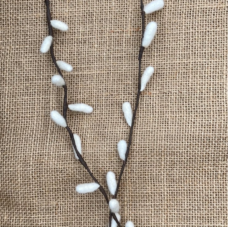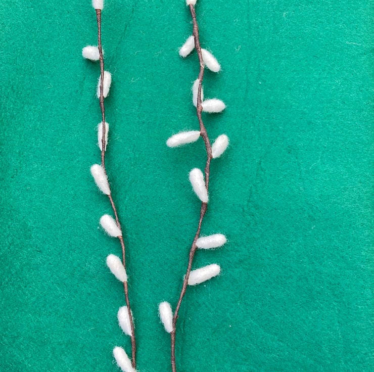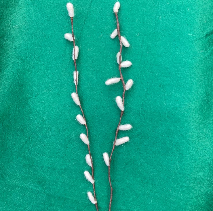 These two pretty pussy willows have been made from wool. I have needle felted them onto a piece of wire which has been wrapped in florist tape to create the stem. The stems measure approximately 42.5 cm and can be bent to your liking. These pussy willows are environmentally friendly as you can keep them forever! They would look very pretty in one of my wool vases or bowls.