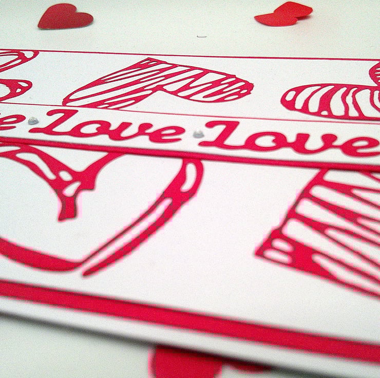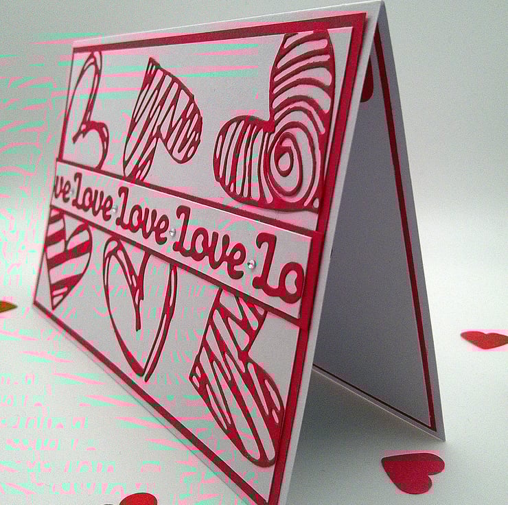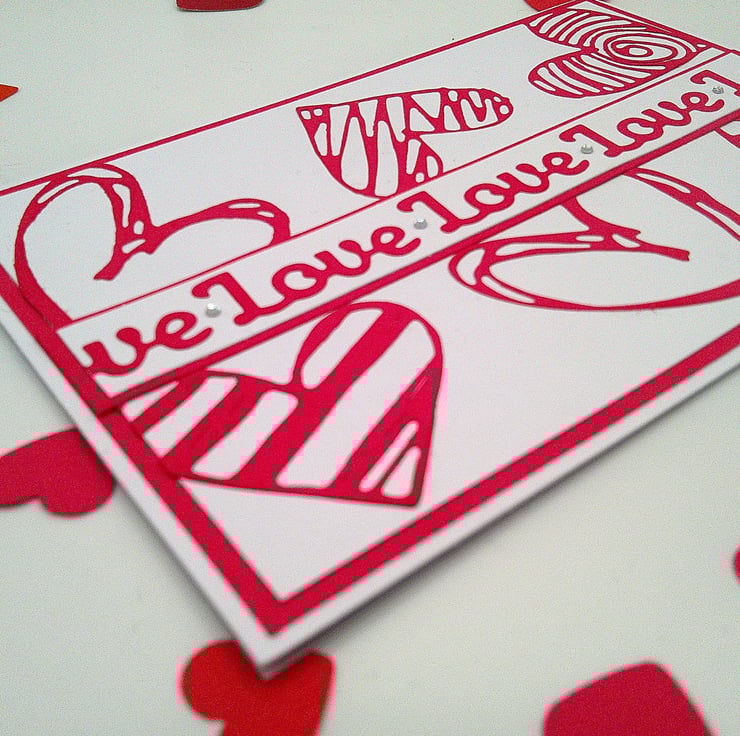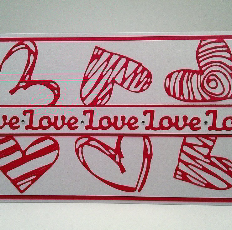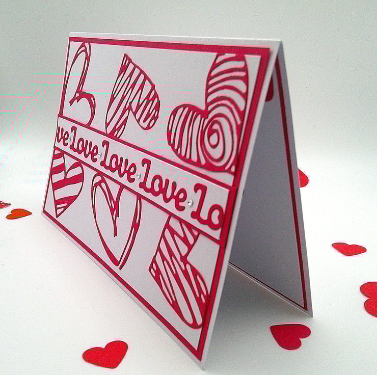 A clean and bold card in red and white suitable for all, and perfect for Valentine’s Day.