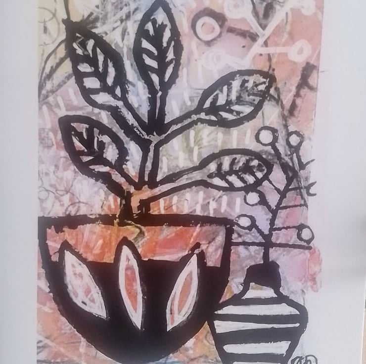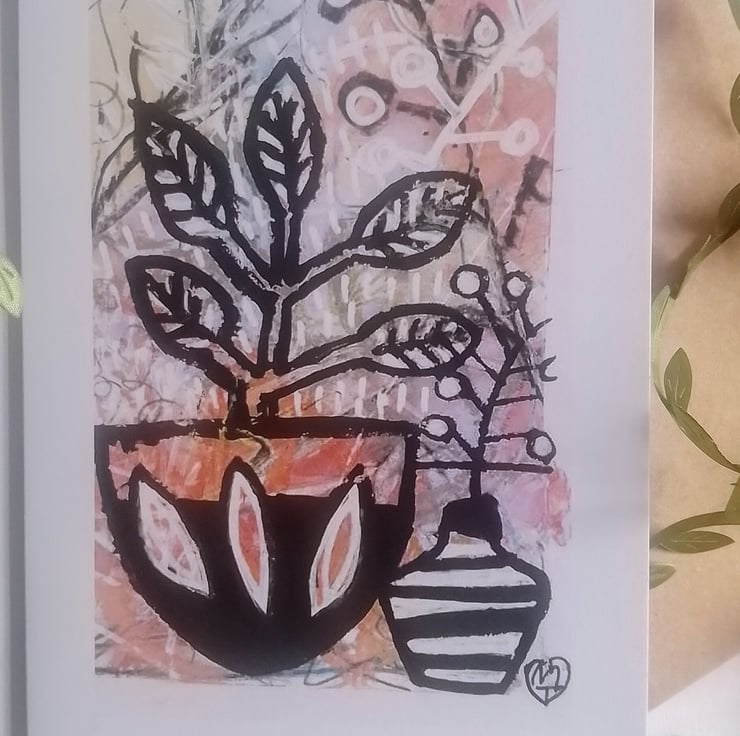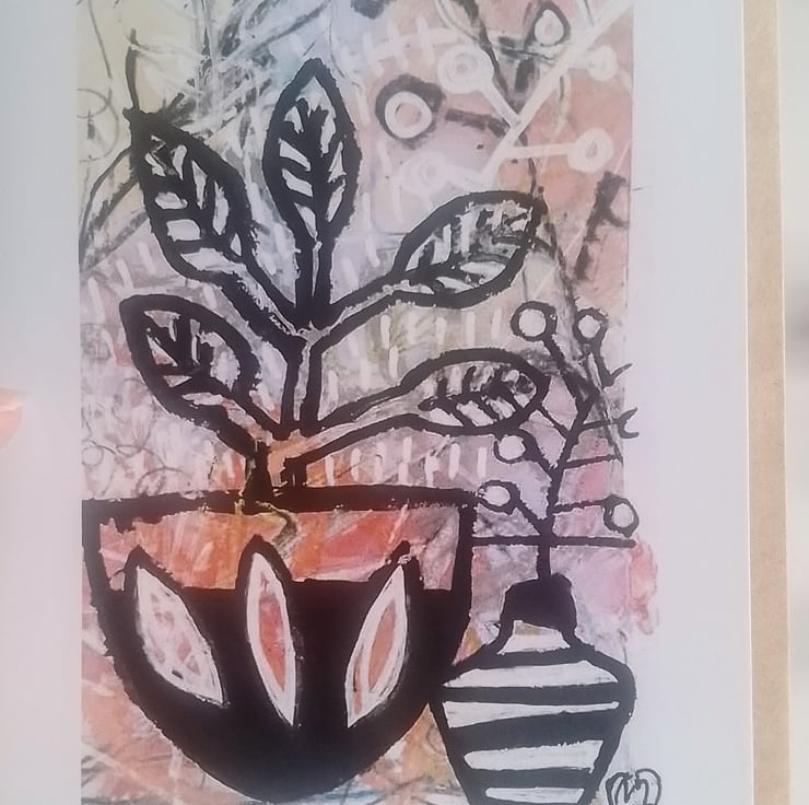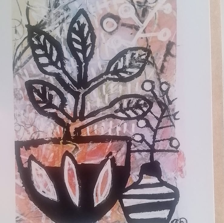 A Gorgeous Original Art Card left blank to be used for any occasion ...depicting Vase & Botanical Forms ...
