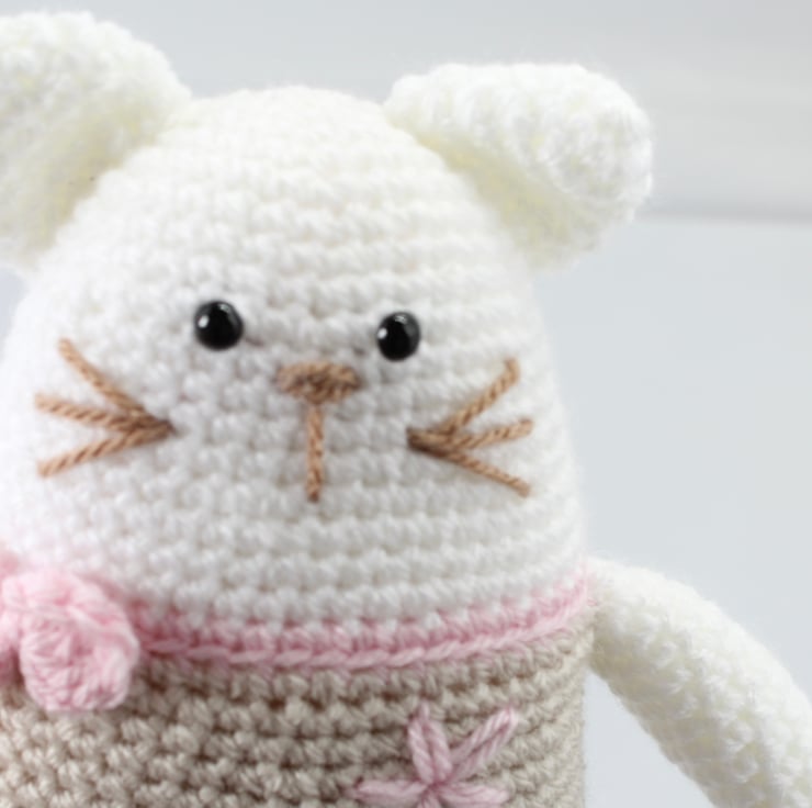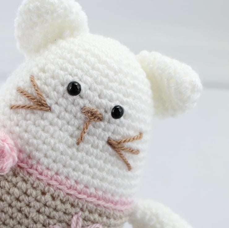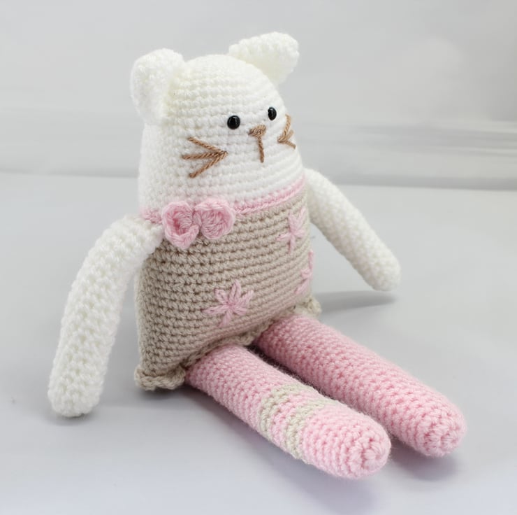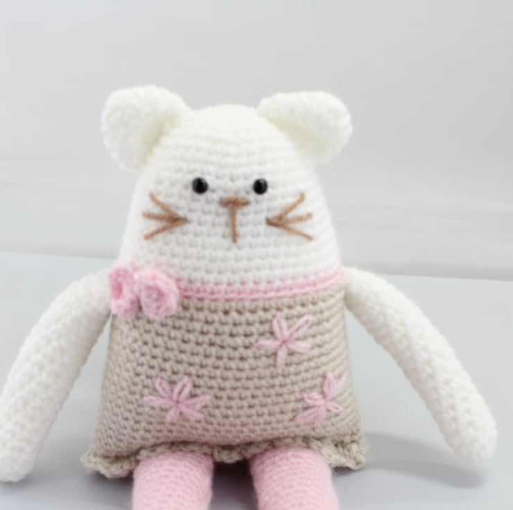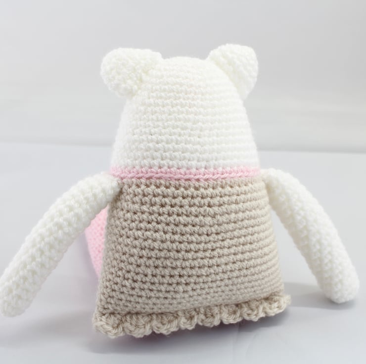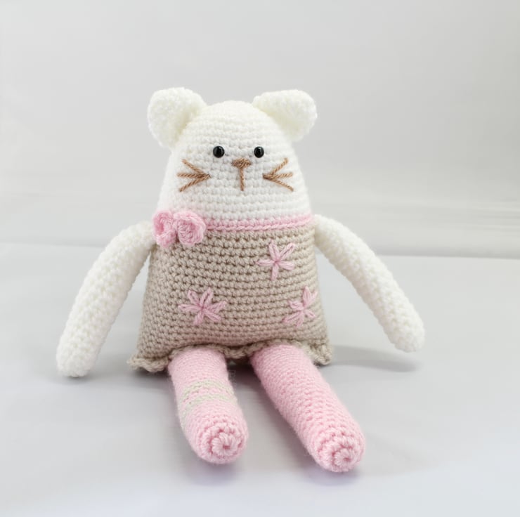 She stands at 30cm from her ear to her toes, she has safety eyes so they can’t be pulled out.