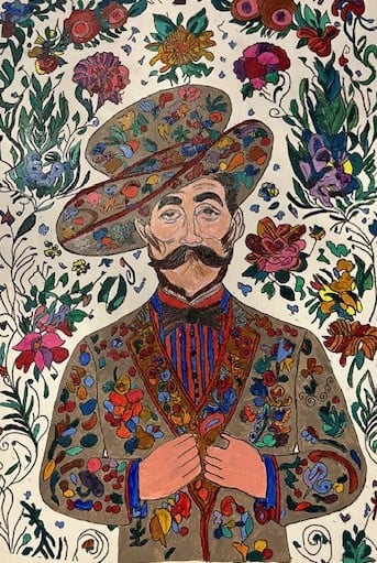This is an illustration created with Acrylic paints and Archival Fine liners. It is inspired by Old London Pearly Kings and Queens Characters that I remember growing up.