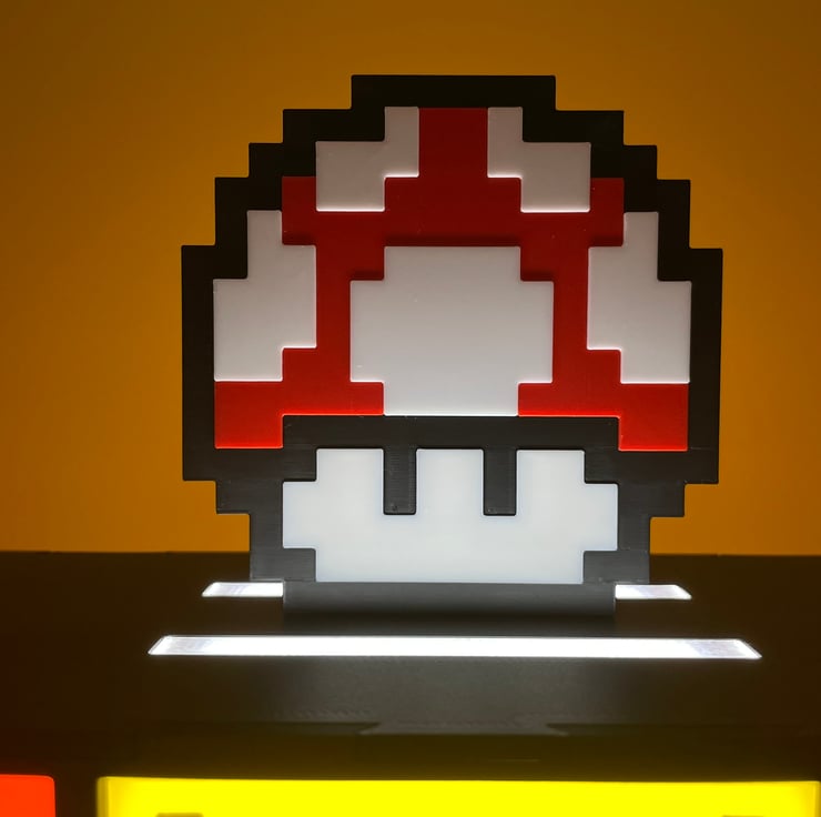 Each lamp is meticulously hand-assembled using custom-designed 3D-printed parts, specialist light-diffusing acrylic panels, and high-quality "no spot" LEDs with an impressive density of 480 LEDs per meter. This ensures exceptionally even lighting across the entire design. The Super Mushroom is carefully crafted with embossed details for enhanced aesthetics and is illuminated from below to highlight its iconic features.