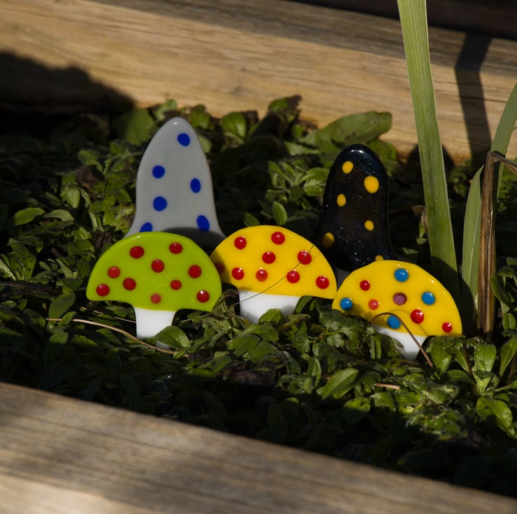 Our pot toadstools add colour to your plant pot, window box, or garden throughout the year.