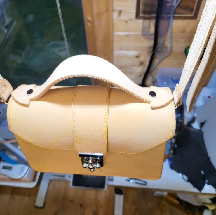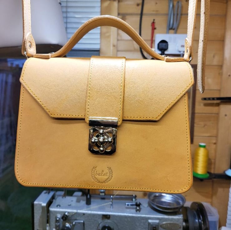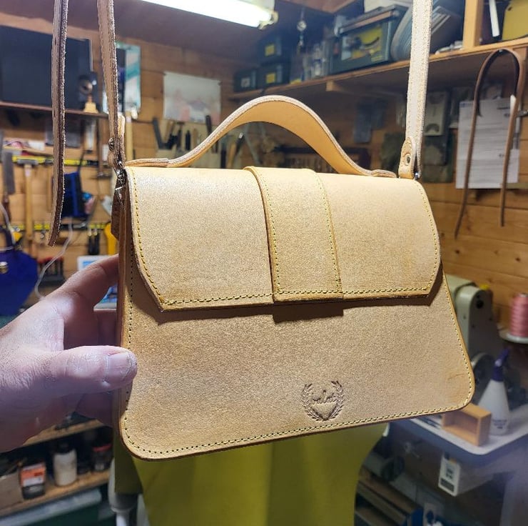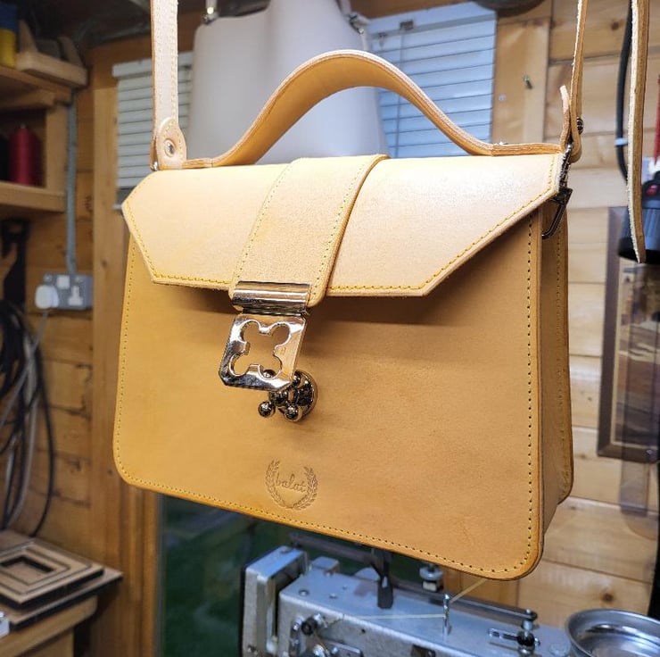 Veg tan leather Bespoke Leather hand bag. This beautiful Veg tan leather hand bag made by me in England. It is protected for wet weather conditions.