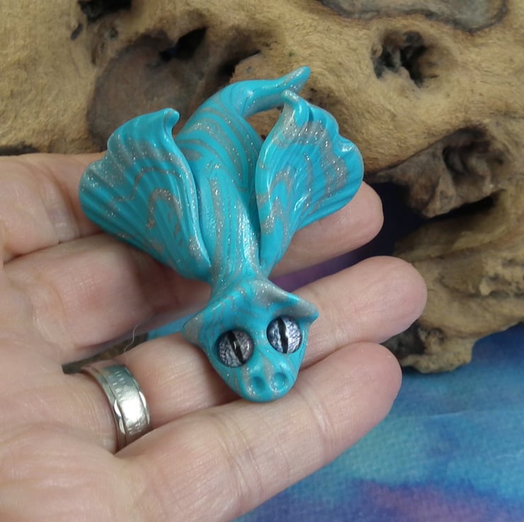 A 'one of a kind' creation having been entirely handmade without the use of moulds here at my studio on the Sussex Coast. Modelled with artist blend polymers before sealing with lacquer, Ace is three inches from snout to tail ...