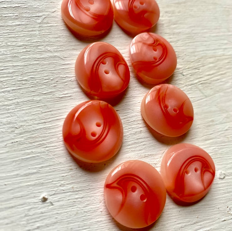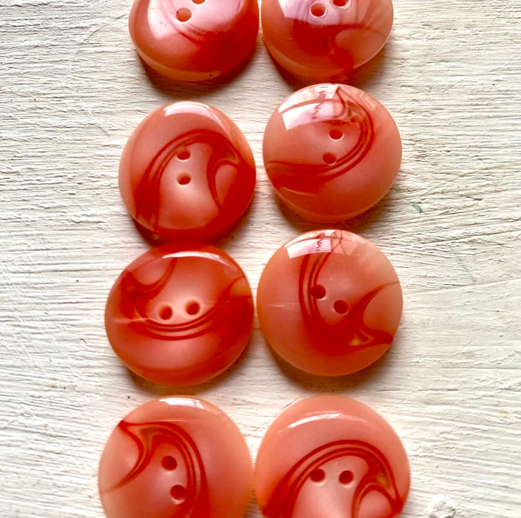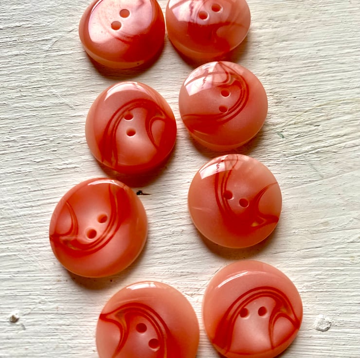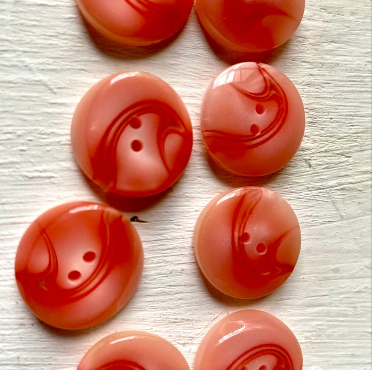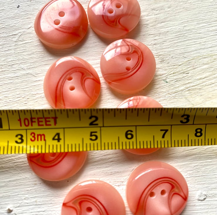 1.75cm in diameter these pretty buttons are a mix of light and dark peachy pink swirls.