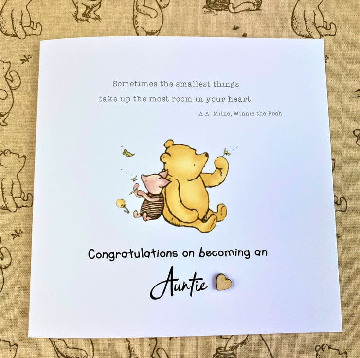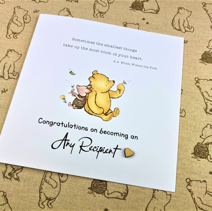 Details: Embellished with a laser-cut wooden heart and features a quote from A.A. Milne.