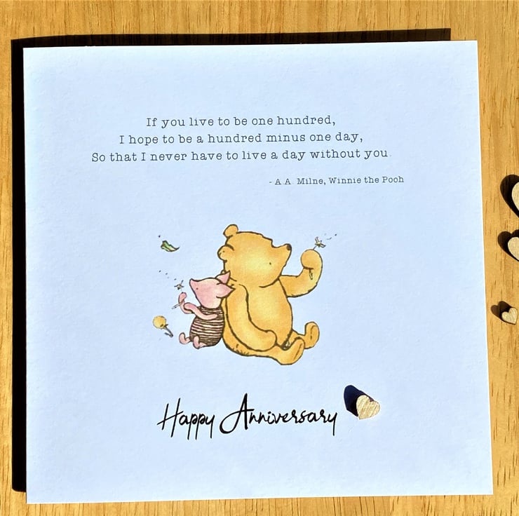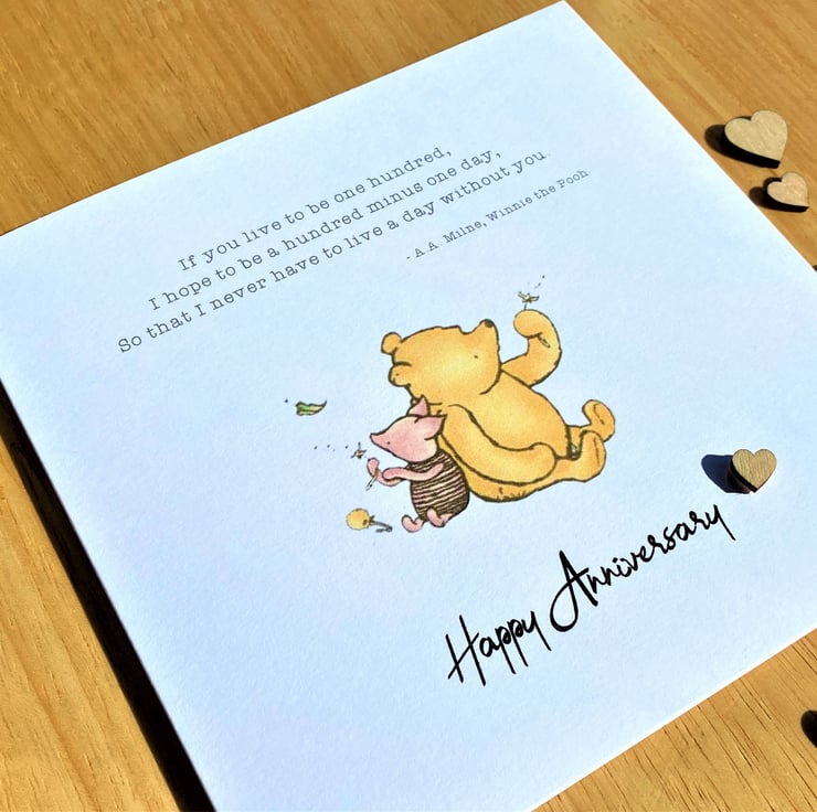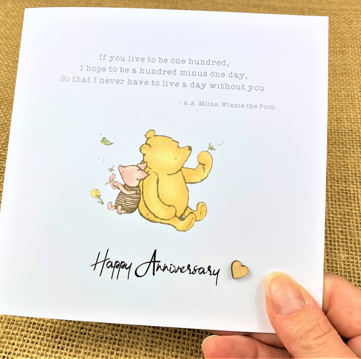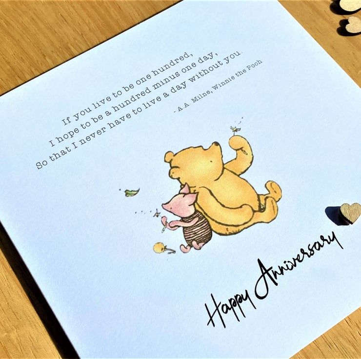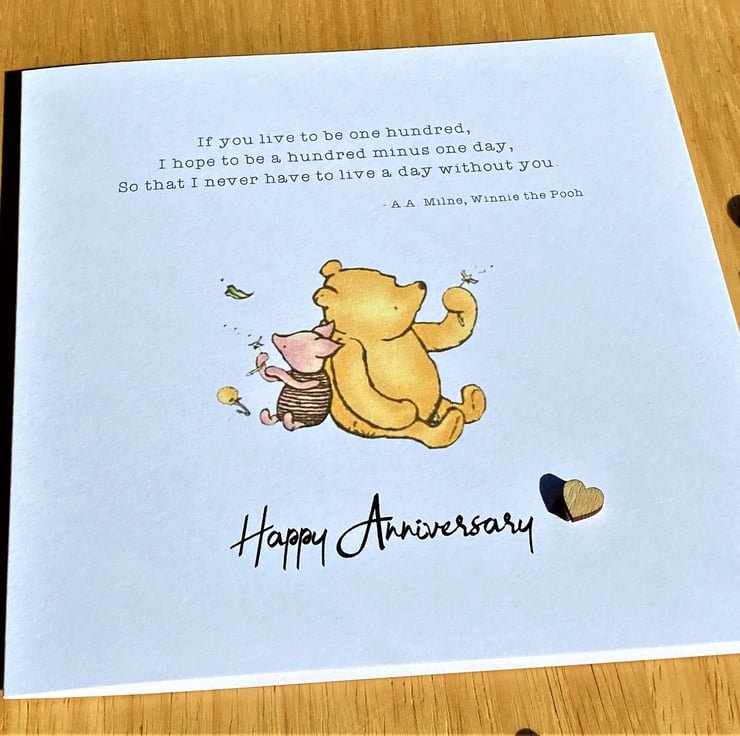 A charming anniversary card with a classic Winnie the Pooh sentiment.