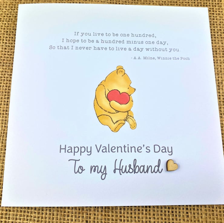 Celebrate love with this charming Winnie the Pooh Valentine's Day card, handmade with care and crafted on premium 250gsm white card. Each card comes with a coordinating envelope, ready to delight your special someone.