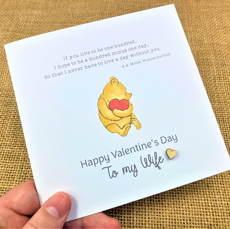 This design combines classic charm with a modern twist, featuring a beautifully laser-cut wooden heart and a unique Winnie the Pooh illustration (created by us based on traditional Winnie the Pooh images). The embellishments make this card truly unique – a perfect keepsake for Valentine's Day.