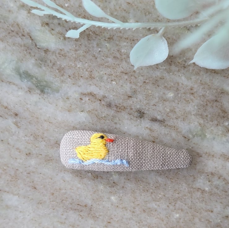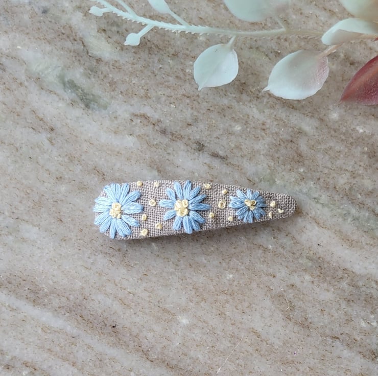 These hand embroidered hair clips are lovingly made with high quality 100% cotton and linen fabric & DMC embroidery floss the clips are 5cm long.