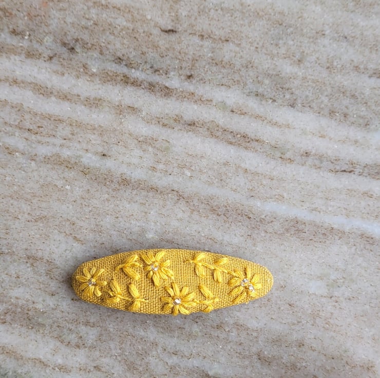 These hand embroidered hair clips are lovingly made with high quality 100% linen fabric & embroidery floss the clips are 6cm long. There are small beads stitched in the middle of each flower. (you can buy the clips without the beads if you prefer, please let me know when you purchase).