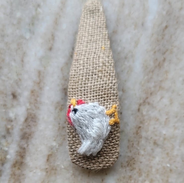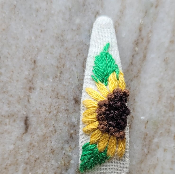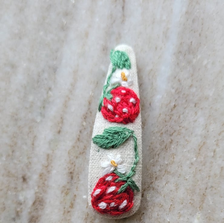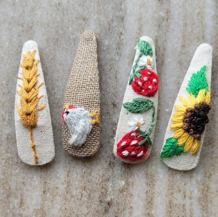 These hand embroidered hair clips are lovingly made with high quality 100% cotton and linen fabric & DMC embroidery floss the clips are 5cm long.