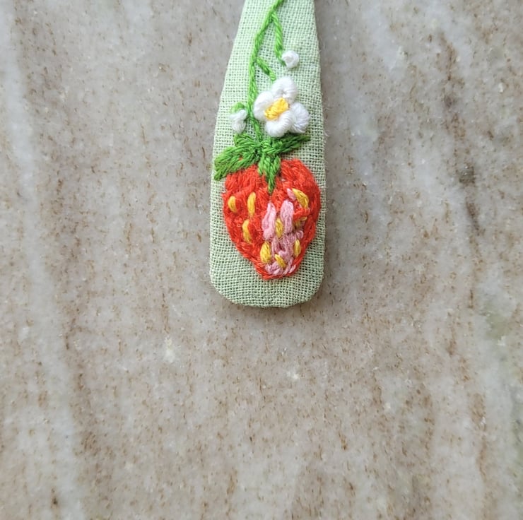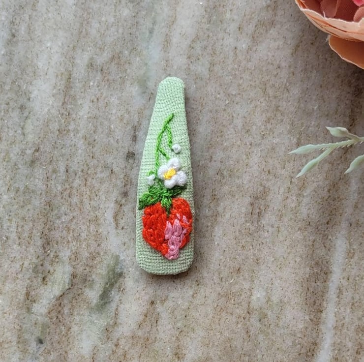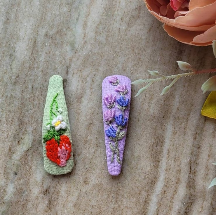 These hand embroidered hair clips are lovingly made with high quality 100% pure cotton fabric & DMC embroidery floss. the clips are 6 cm long.
