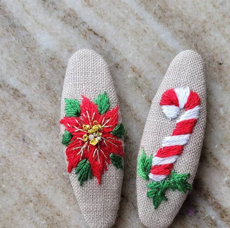 candy cane hair clips clip,  poinsettia christmas, winter snow,  holiday