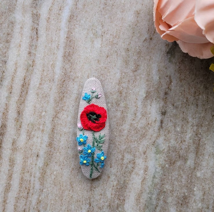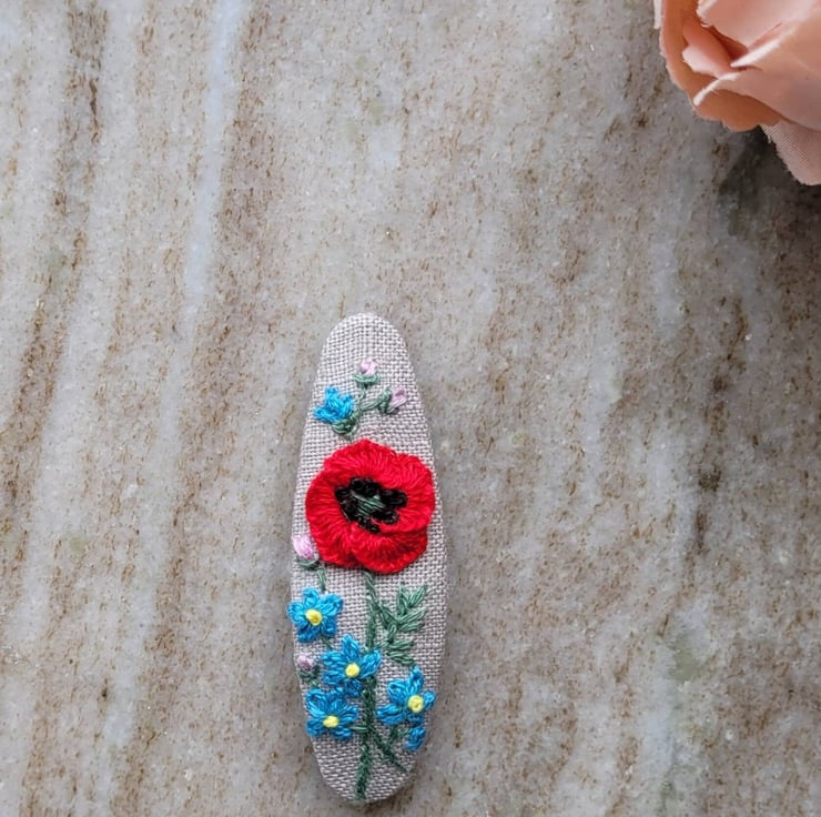 poppy flower hair clip, forget me not, gift for girls, hand embroidered, Unique