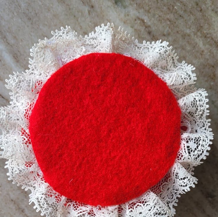 The size is approximately 3inches, (3.5 inches with the lace) diameter and 1 inch ( hight).