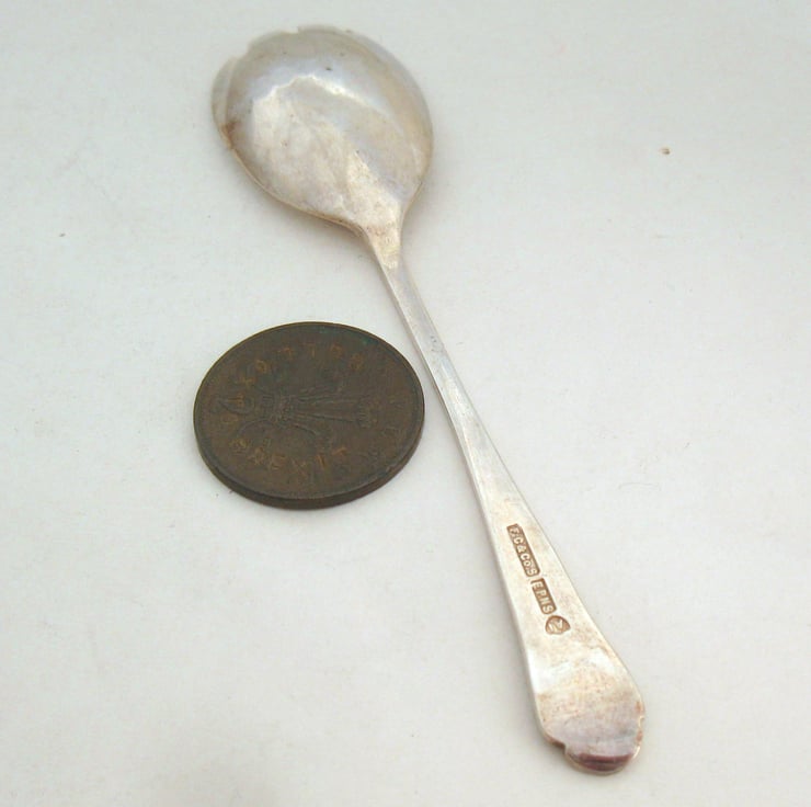 You will receive the spoon shown in the photos. It is about 12cm long, and it's vintage (or quite possibly antique) and pre-loved so it does have some wear to its original silver plating, although this doesn't affect its efficacy as a spoon at all. It also has a bit of residual tarnish that can probably be removed with a proprietary silver polish if you'd like your spoon shinier.