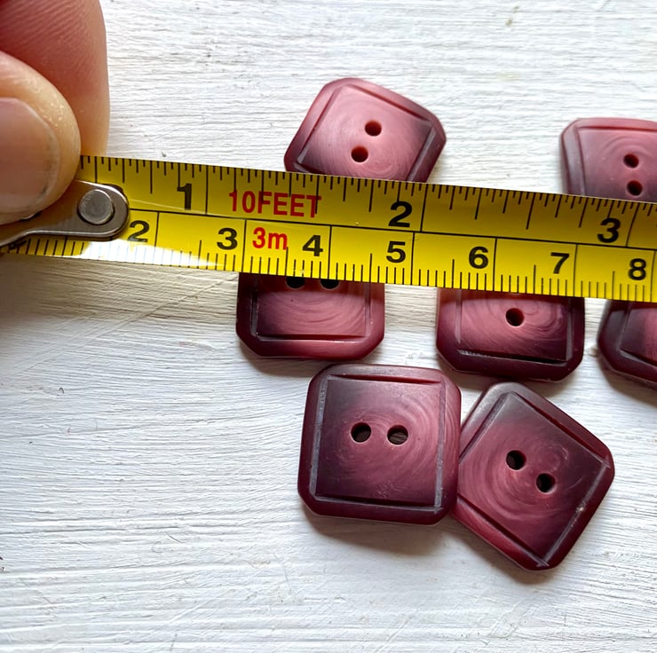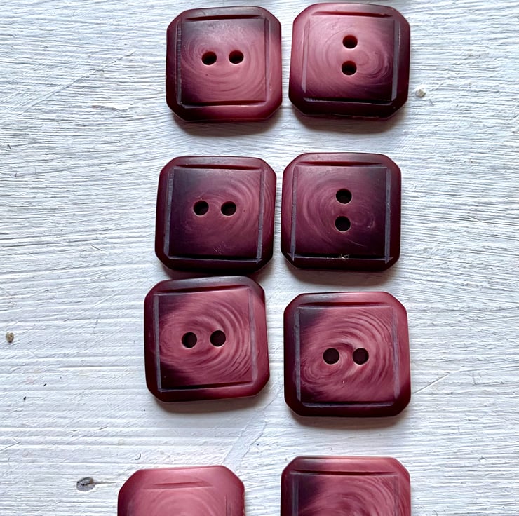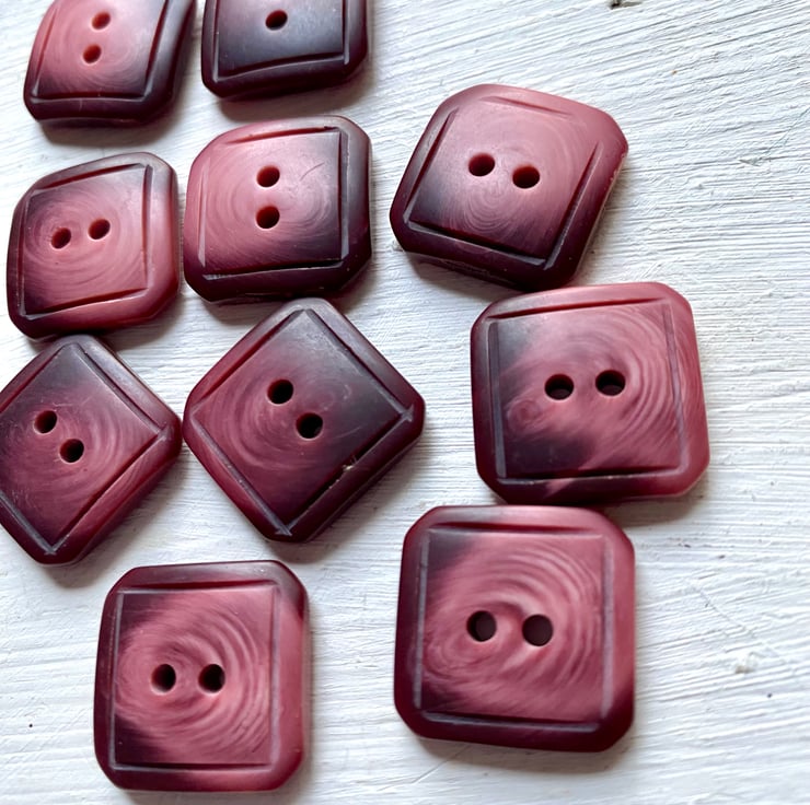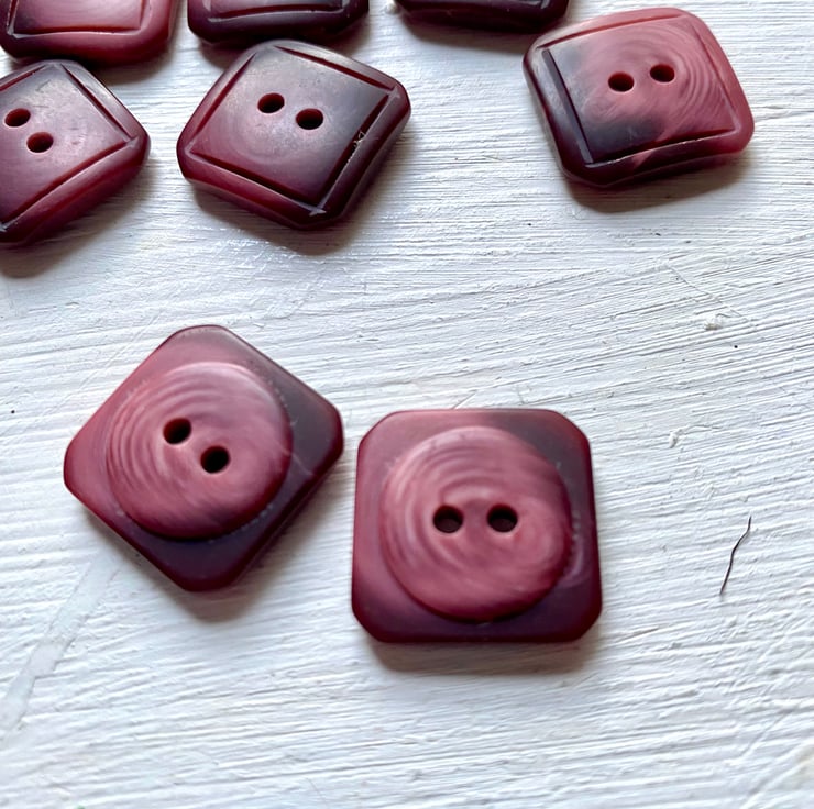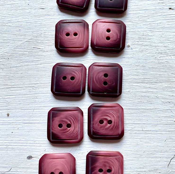 2cm across, these square buttons are rounded at the corners for ease of use. A nice mix of dusky dark pink and deeper burgundy.