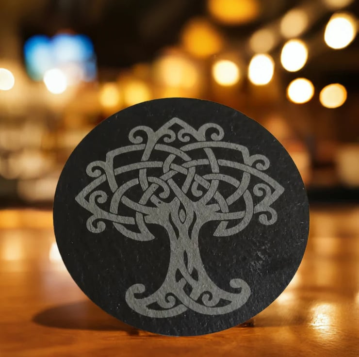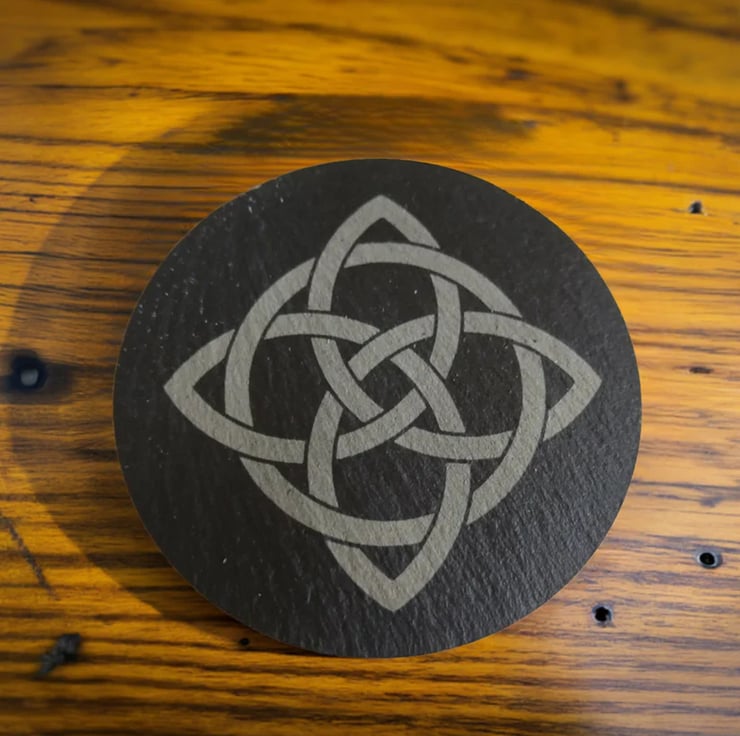 We love slate, this slate we must admit is our favourite as it has a small surface that brings out a clear design with our engraver. We love that they are thick and chunky.. Slate is great to work with but takes alot of practice. We love Celt designs being from this heritage and therefore love how this turned out.