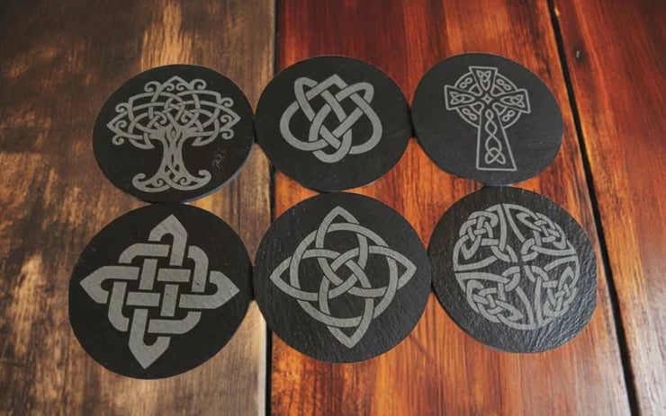 Set of 6 slate coasters with celt design engraved on each one.