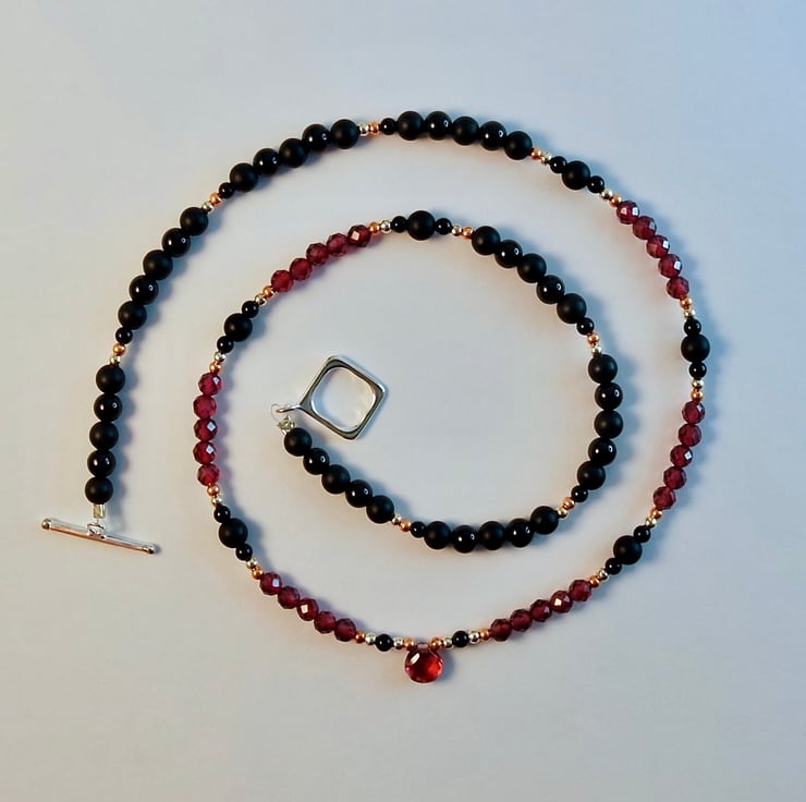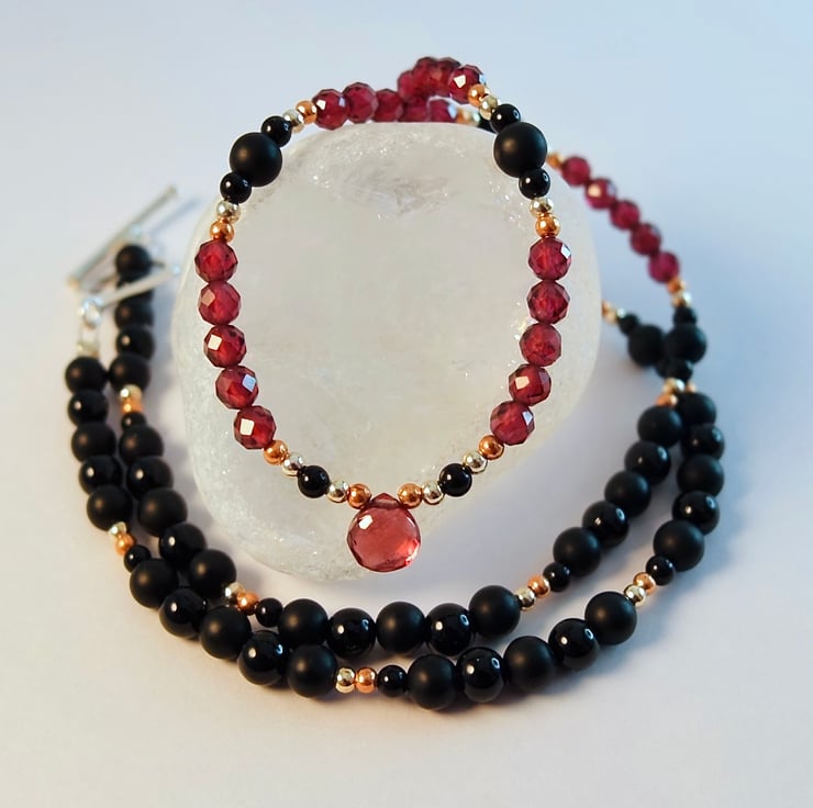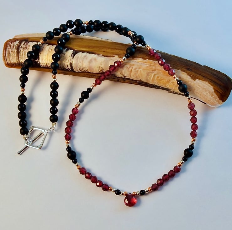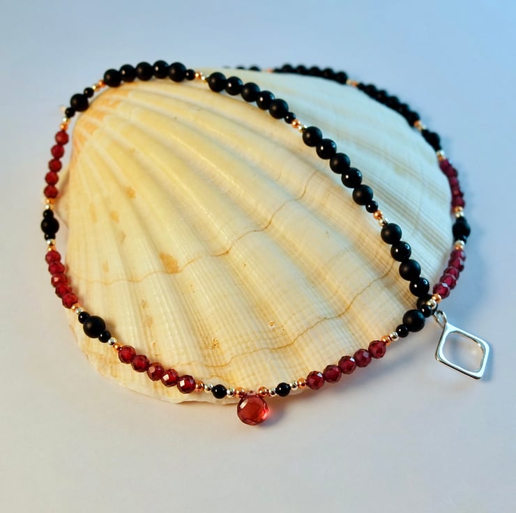 Garnet & Onyx Necklace, January Birthstone, Anniversary, Birthday, Gift For Her