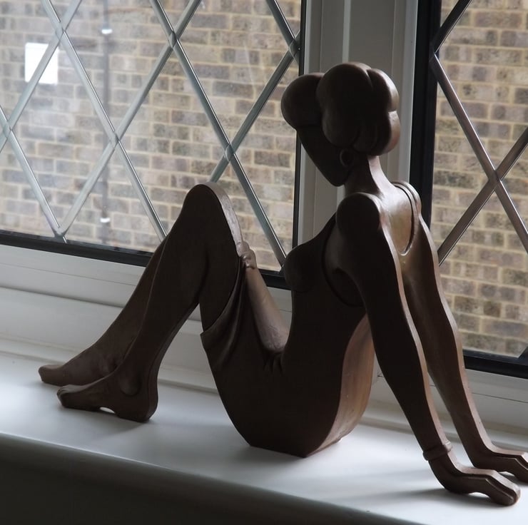 Sitting Pretty is a limited edition, stylized, bronze resin sculpture by Anthony Cox. The original was first modelled in clay and fired in a kiln, before a silicone rubber mould was taken. The replicas are cold cast in bronze resin.