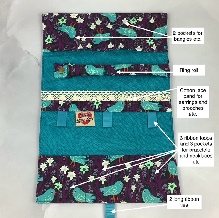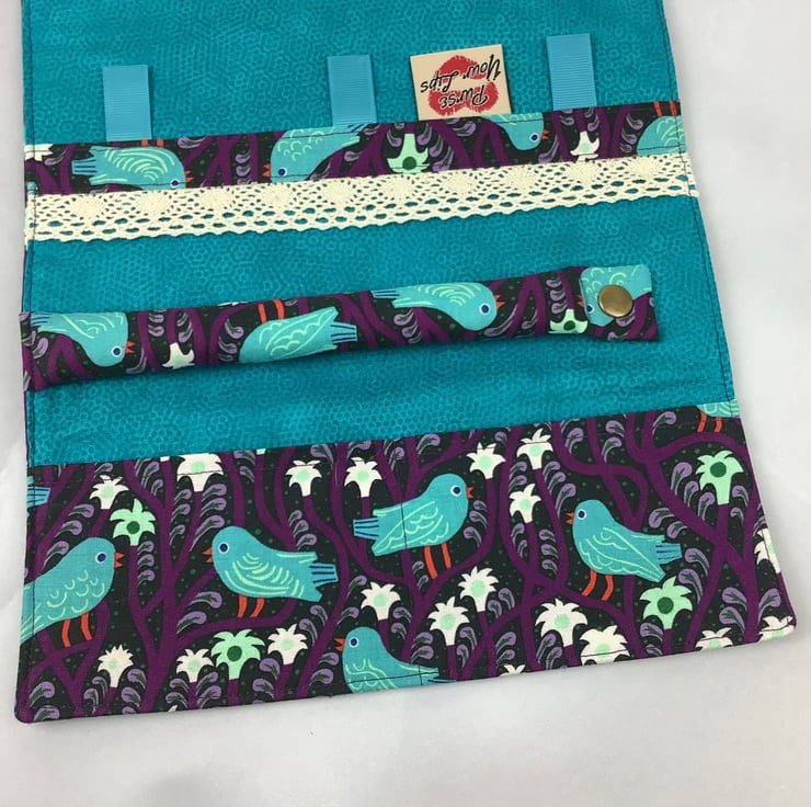 This unique jewellery roll is individually made by me in my relaxing and tranquil little West Sussex garden studio.