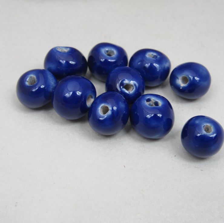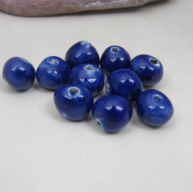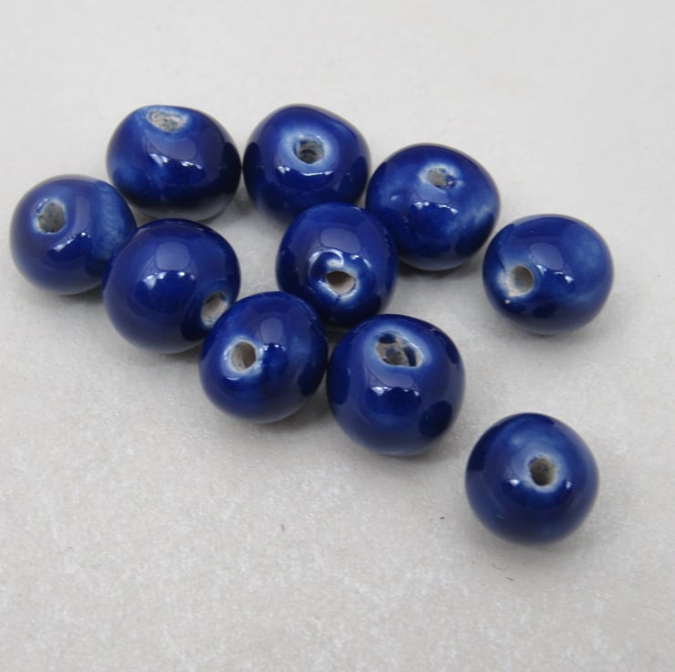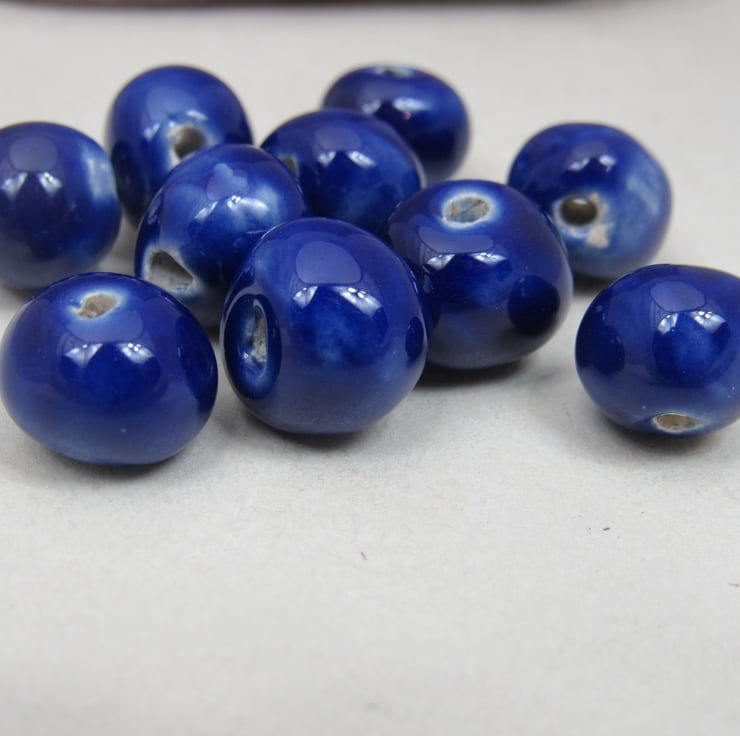 A mixture of handrolled ceramic beads, coloured with a deep cobalt blue glaze