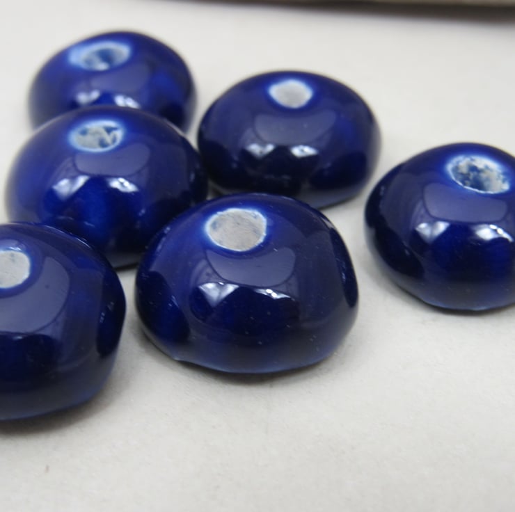 6 Small Cobalt Blue Half-round Ceramic Flower Beads
