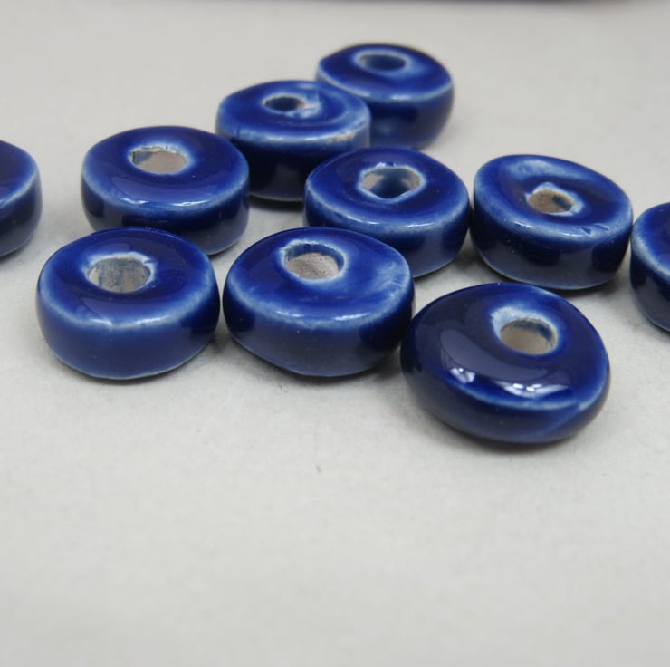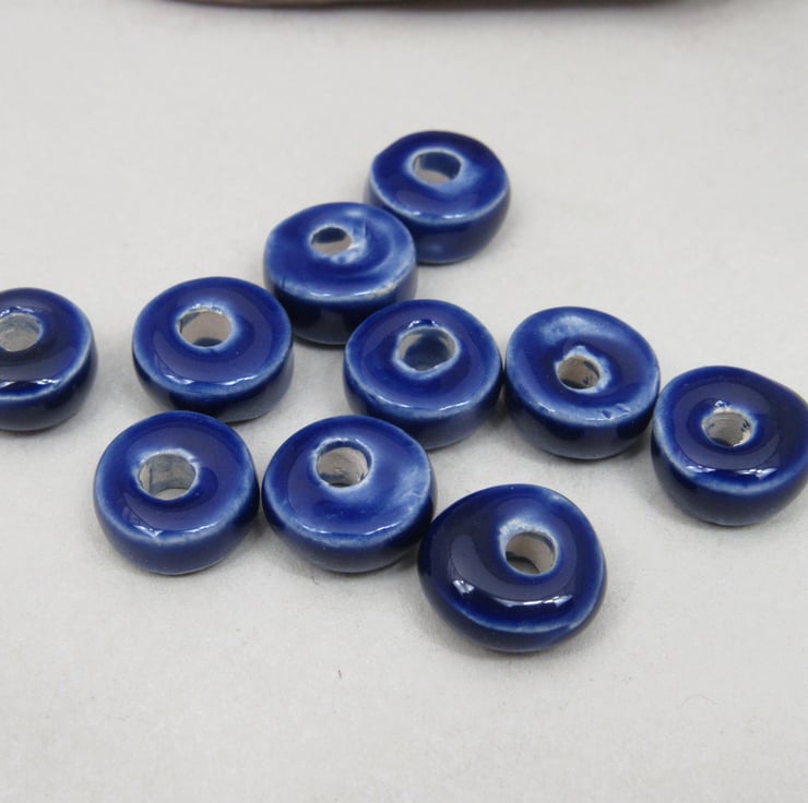 10 Small Cobalt Blue Glazed Ceramic Washer Beads