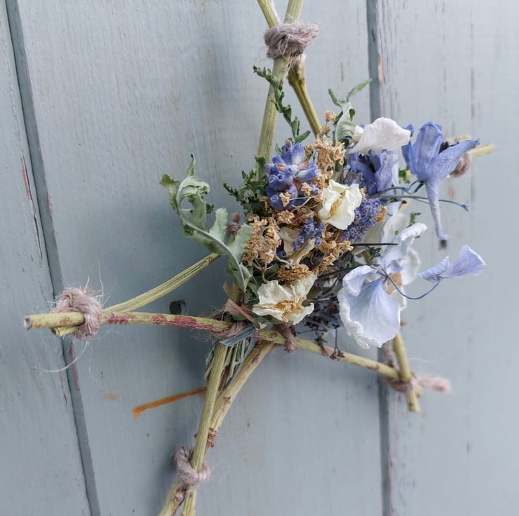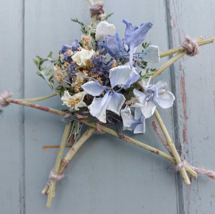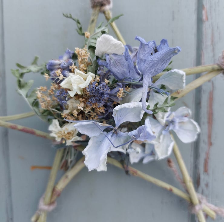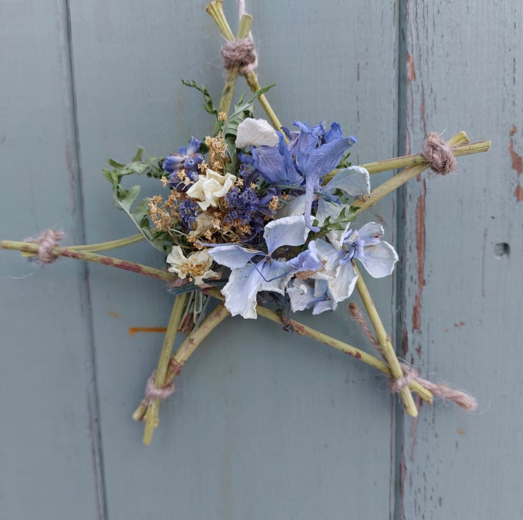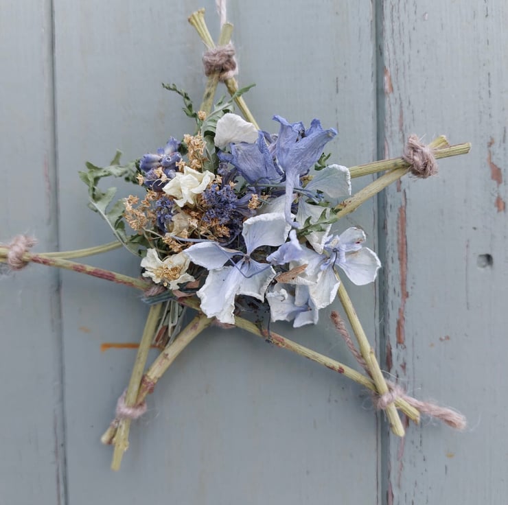 A handmade dried flower star or measuring approximately 14x14cm at it’s widest points.