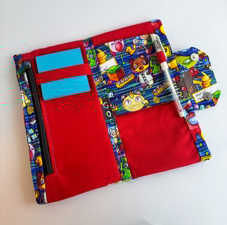 Elastic for holding a pen.