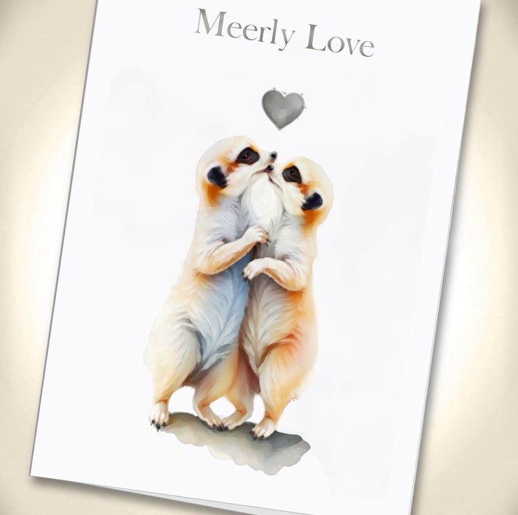 Cute Meercat Valentines card. This watercolour print card is A5 in size with printed picture insert and comes with a C5 envelope.