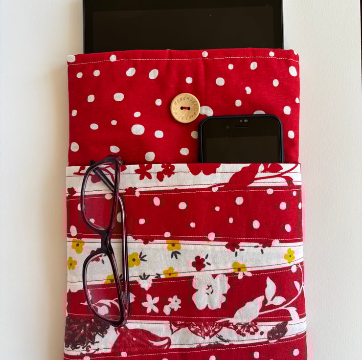 Patchwork iPad / Tablet/bookcase with pocket for phone, glasses, and much more.