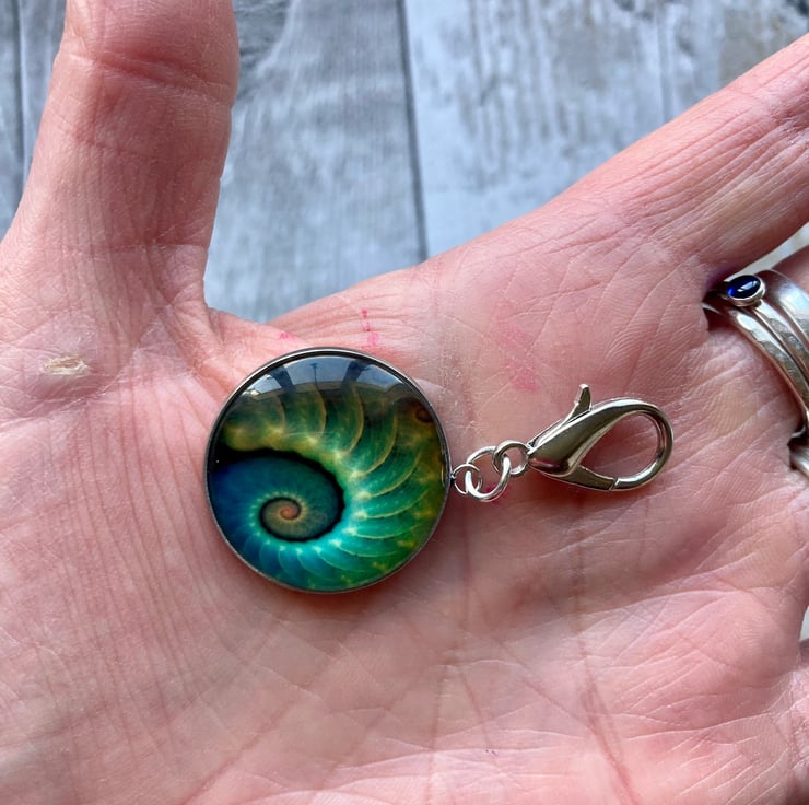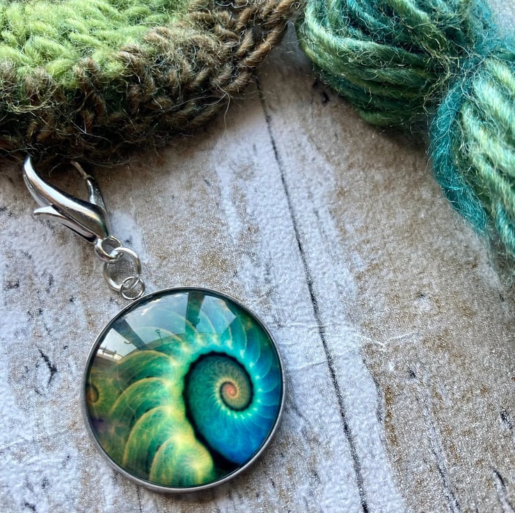 Pretty glass 25mm cabochon hung on easy to open big lobster hooks and can be used for crochet as well as marking your knitting progress.