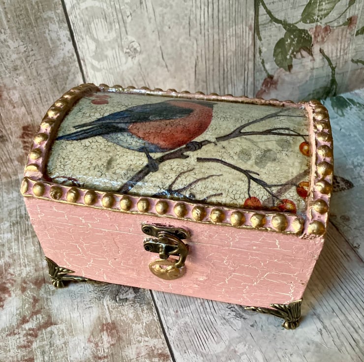 This is a lovely vintage style jewellery/keepsake box with a beautiful Bullfinch & Berries design on the lid.