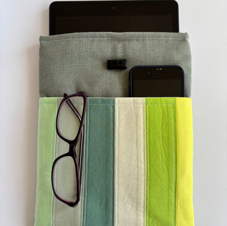 Patchwork iPad / Tablet/bookcase with pocket for phone, glasses, and much more.