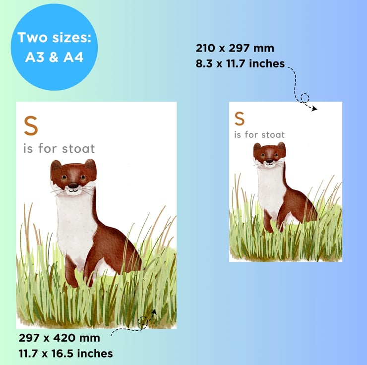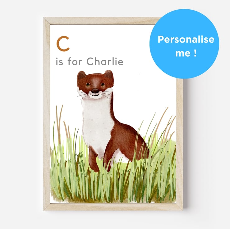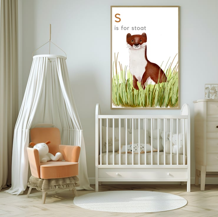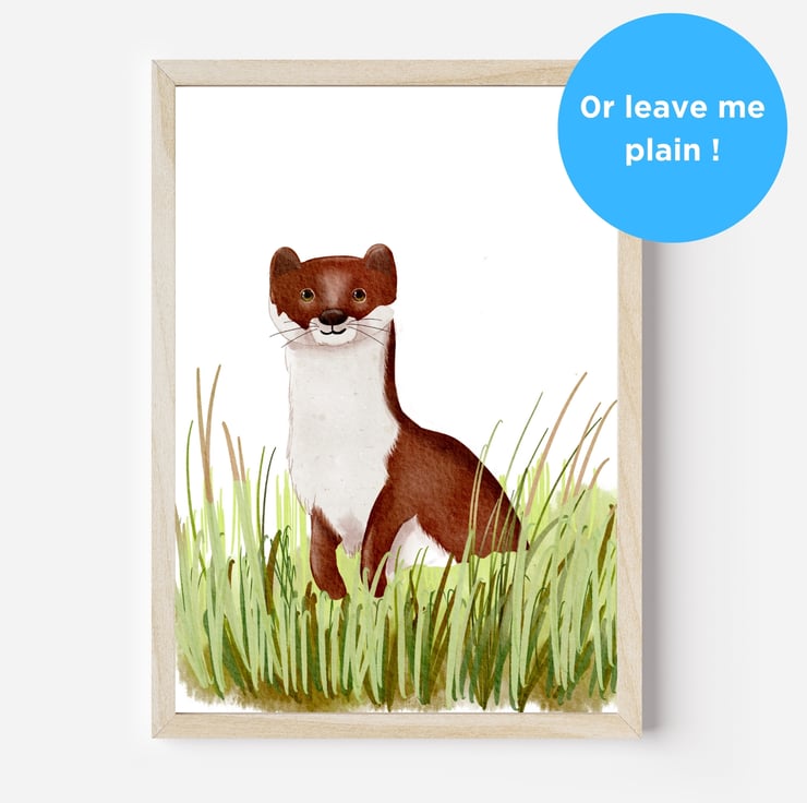 Looking for the perfect finishing touch for your child's bedroom or nursery. This delightful print of a stoat will take them on a magical wildlife adventure, enchanting them for years to come.