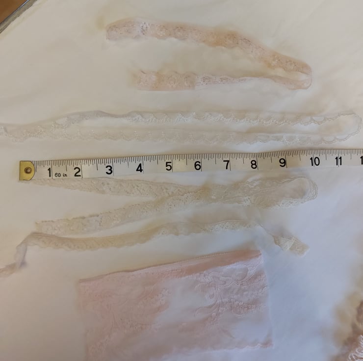 A selection of vintage fabrics, trims, ribbons and buttons to begin your slow stitching journey.