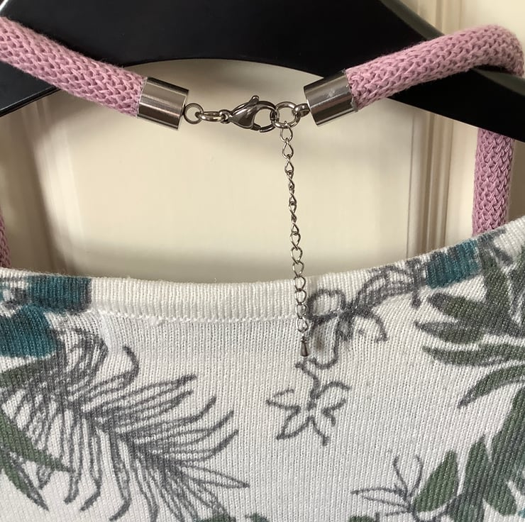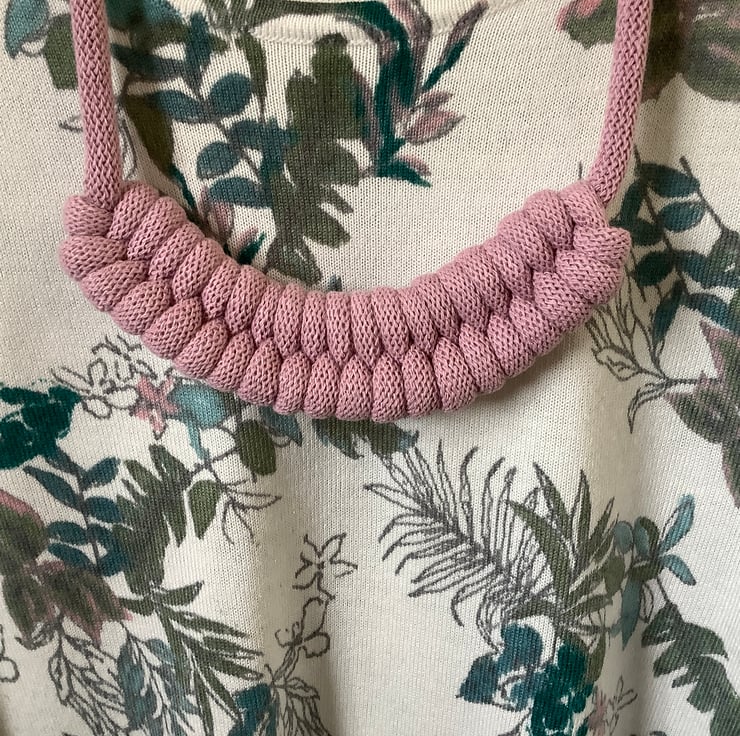 I have made this gorgeous macrame/crochet necklace using 9mm jumbo cord made from recycled cotton which meets the OEKO-TEX Standard 100, in dusty pink.