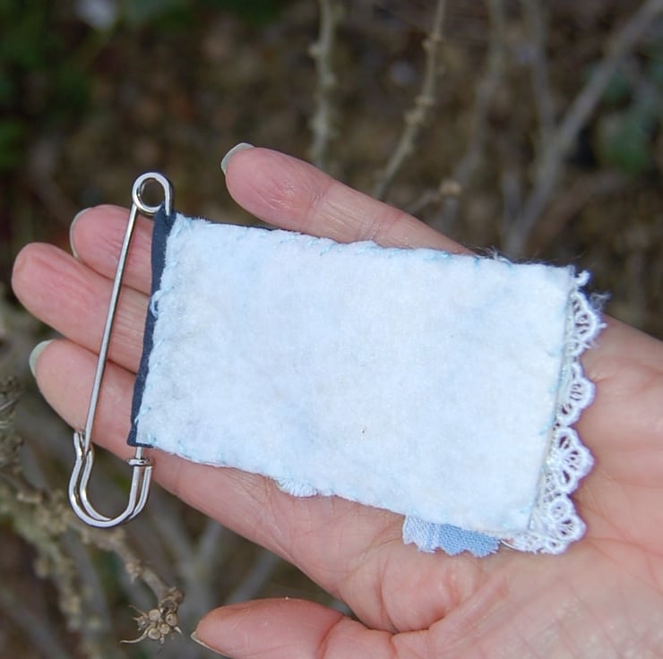 A beautiful hand made brooch featuring a snowdrop. I have made the brooch using a selection of vintage and new fabric remnants. All had stitched.
