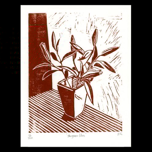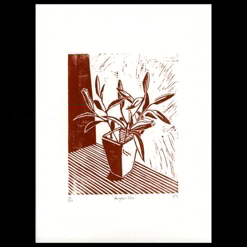 Brown/red ink on off-white German Zerkall 170gsm acid-free paper. From an edition of 100, signed and numbered.