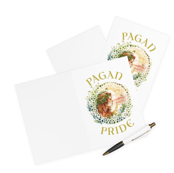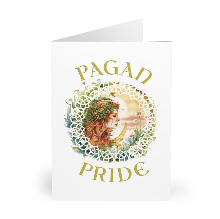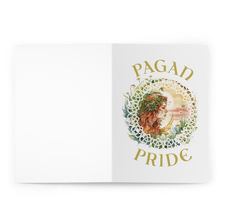 Celebrate any Pagan or Wiccan occasion with this simple yet stylish Pagan Pride greeting card. Featuring a watercolour Spring Goddess set within a flower woven wreath, the card is entirely handmade from scratch with 260gsm professional quality matt photo paper mounted on white 300gsm cardstock. The card is then trimmed and a blank insert added for your own personal message.