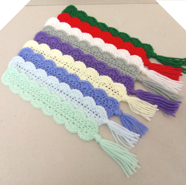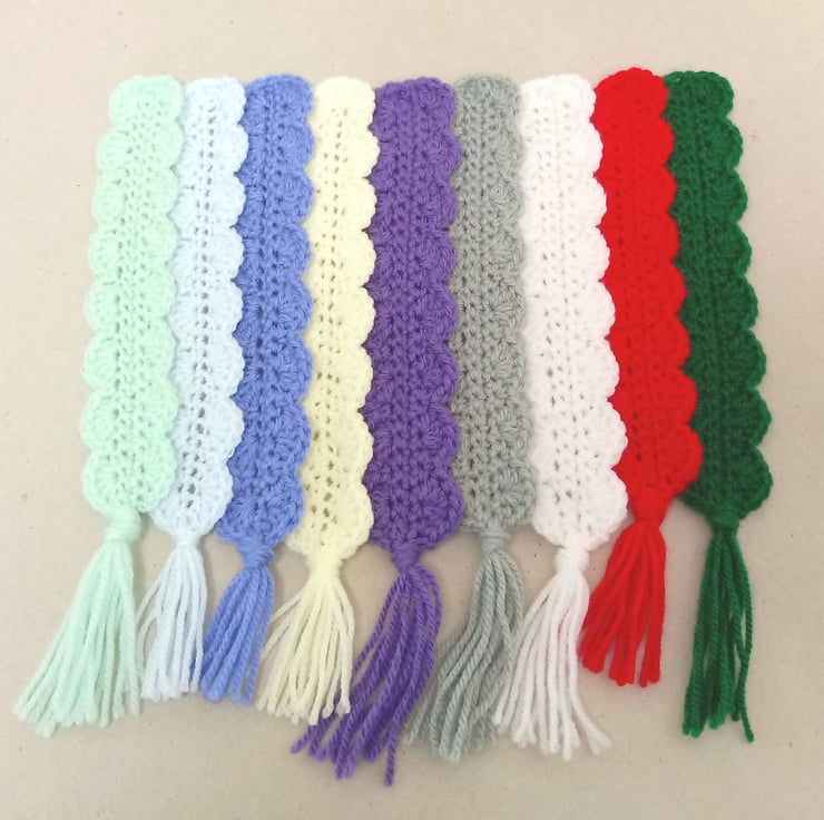 Lovely bookmarks crocheted in a pretty pattern, each with a matching tassel.